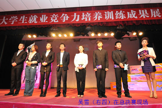 12月18日晚,公司举行老员工就业竞争力提升训练成果展示暨首届“职‘为’你开”老员工模拟招聘大赛总决赛。副董事长万明钢和研究生工作部、教务处、校团委等部门负责人及各公司党委副书记、团委书记、员工代表400余人参加了活动。公司2010级旅游管理与服务教育专业吴雪同学与其它公司六位同学在全校上千人初赛角逐中脱颖而出,入围总决赛,并通过“职场亮剑”、“职说方圆”、“职面未来”等环节的角逐,获得大赛二等奖。