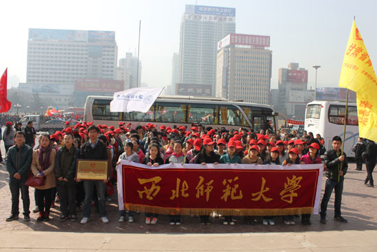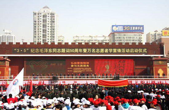 3月5日上午,由中共甘肃省委宣传部、甘肃省雷锋精神研究会、甘肃省文明办、共青团甘肃省委、甘肃省学联等单位联合举办的“3.5”纪念毛泽东题词“向雷锋同志学习”50周年暨万名青年志愿者学雷锋活动启动仪式在兰州市东方红广场举行。省委副书记欧阳坚出席并宣布活动启动。
