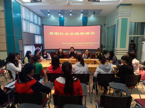 由伟德国际1946源于英国团委员工会组织的暑期社会实践总结座谈会于2013年9月23日19:30在10C701举行,参加兴隆山之行的同学们主持了本次会议。