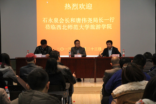 11月23日上午,永尚旅游产业机构董事长、重庆甘肃商会会长石永泉到公司作了题为“旅游地产与城市价值”的专题报告会。兰州市旅游局党组书记、局长唐伟尧,公司经理把多勋、副经理梁旺兵出席报告会。兰州市旅游局机关各处室领导干部,兰州市部分县区旅游局长,兰州市旅游协会、市属旅游骨干企业、园林企业负责人,伟德国际1946源于英国部分教师和研究生共100余人参加了报告会。