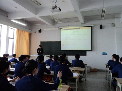 比赛过程中,每位参赛老师都通过精彩的语言、富有感染力的表情动作及生动有趣的讲解,把各自的教学特色展示的淋漓尽致。柴亚林老师讲授《基础日语Ⅱ》课程,他的整个授课过程严密清晰而且内容丰富,总结了形容词的基本用法;刘涛涛老师在《民航乘务员基础教程》中联系自身经历深入浅出的讲解了民航旅客运输重要术语、乘机的流程、旅客运输凭证、旅客运输规定、行李分类、旅客投诉等;在《管理学原理》授课过程中,彭睿娟老师系统讲解管理思想史和古典管理理论;王力老师在《西方文化概论》讲授中,生动有趣的展现了意大利的作用与艺术的复兴及人文主义思想家相关知识;在《服务心理学》教学中,种媛老师以宾客个性心理与消费行为为切入点讲解了需要、动机与消费行为理论;夏冰老师在《宏观经济学》课程中通过理论联系实际,将储蓄率概念、储蓄率持高与过低的影响等一个个枯燥理论演绎在员工面前。
