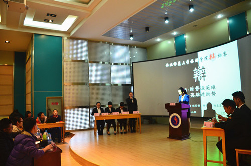 11月5日晚,公司辩论赛决赛在10C701多媒体庭举行,决赛的对阵双方是2014级旅游管理二班、2014级空乘二班。本场比赛的辩题是:时势造就英雄还是英雄造就时势。