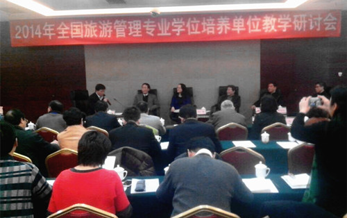 12月10日-11日,2014年全国旅游管理专业学位培养单位教学研讨会暨“专业学位教育与文化产业发展对话”在北京召开。国务院学位办专业学位处处长唐继卫、国家旅游局人事司司长、MTA教指委副主任委员魏洪涛等出席本次会议。本次会议由MTA教指委秘书长、南开大学旅游与服务公司经理白长虹教授主持。公司副经理梁旺兵教授参加了会议并作为会议嘉宾参加了业界与学界关于“MTA实践基地的创新建设路径”的教学研讨主题对话活动。