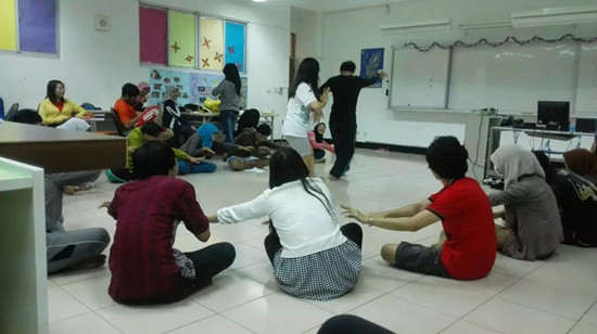 课余时间来自各国的同学表演自己的家乡舞(图为印尼同学的表演)