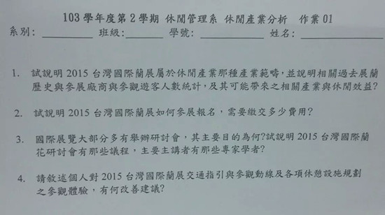 《观光资源规划》课程在台湾国际兰展进行课程实践