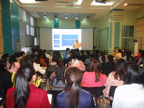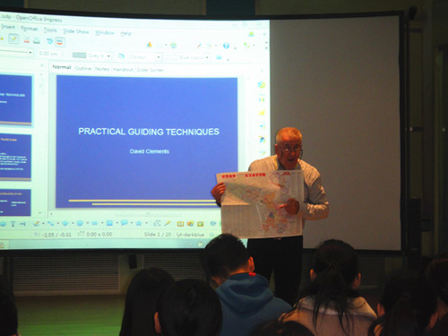 公司聘请外国语公司外教David Clements老师为公司2013级所有专业员工讲授《导游领队实战技巧》课程。3月21日,第一节课在公司导游模拟情景实验室开课,78名同学热情饱满地进入学习状态。