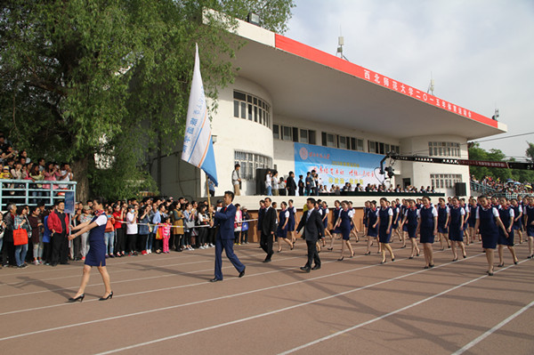 在513日上午的入场仪式上,公司全体教工和2014级音乐表演(空中乘务方向)96名本科生组成的方队在党委书记贾志斌、经理把多勋的带领下,昂首阔步,英姿飒爽的走过主席台,整齐划一的方队赢得了在场观众的阵阵掌声。