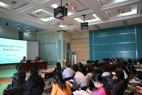 罗兹柏教授长期从事旅游管理专业本科和研究生的教学,在旅游市场、旅游营销等方面造诣颇深。在报告中,罗教授首先从大旅游的背景出发,认为旅游业是“待客产业”,首先应对的是旅游市场,应从大市场、大资源、大产业、大效应来认知旅游业。罗教授指出,体验是旅游业的根基,定位是旅游业的灵魂,并从自己的实践经验出发,详细阐释了自己对旅游业的认识。罗教授的报告结合实践,深入浅出,博得了同学和老师的阵阵掌声。