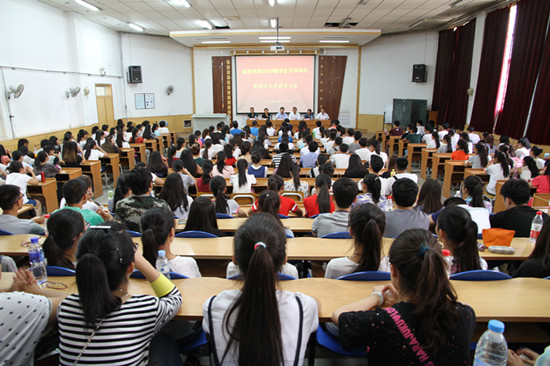 8月27日下午,公司2015级员工开学典礼暨新生入学教育大会在6号楼C区115多媒体报告厅隆重举行。公司党委书记贾志斌副研究员、经理把多勋教授、副经理梁旺兵教授、高亚芳教授、万建斌同志、副书记谢致远副研究员,旅游管理系系主任欧阳正宇博士、酒店管理系副系主任谢民老师、航空服务与管理系系主任柴亚林博士、文化产业管理系系主任王力博士,院办公室主任张建华老师、团委书记王瑞老师、北京广慧金通教育科技有限公司驻西北师大工作处主任张晓雯老师,2015级本科生班主任、辅导员、2015级全体新生及部分家长共300余人参加了本次大会。大会由党委副书记谢致远主持。