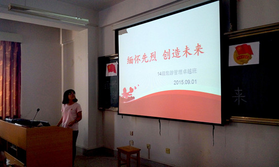 为了纪念抗战胜利七十周年,公司旅游管理卓越班在公司组织的举办了主题“为缅怀先烈,创造未来”的团组织活动。
