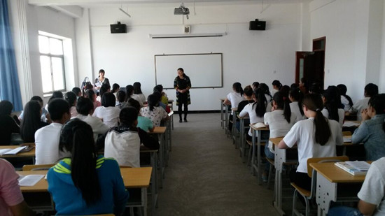 典礼后,高亚芳教授一行三人共同给敦煌公司旅游管理班上了第一节专业导引课。三位老师分别从旅游学科和专业发展前沿、专业知识和能力要求、基本素养以及就业形势等方面为同学们进行了全面解读,同时强调了校本部的一体化培养,一视同仁的关怀;给大家提供了公司乐在旅途微信公众平台和公司网址,让同学们能够与公司保持联通,共享资源,让同学们把身边的故事随时分享到公司公众平台;三位老师还对同学们的老员工活寄予了殷切期望,希望同学们能够积极健康成长,成为具有高尚思想品质和良好道德修养、掌握丰富知识和扎实本领的优秀人才。