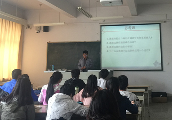 课堂上,王力老师首先对调查课题的重要性,选择调查课题的标准和途径等问题进行了复习总结,指出调查课题的确立对整个调查工作的影响。接着,从明确调查目的、提出研究假设、确定分析单位、设计抽样方案、设计收集资料的方法以及制定实施方案等内容详细分析了调查设计的步骤、程序及需要注意的问题。