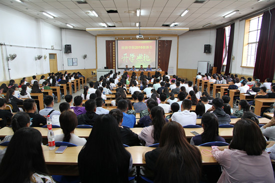 8月25日下午,公司2016级新生开学典礼暨入学教育大会在6号楼报告厅举行。全体院领导、各系主任、办公室主任、团委负责人、2016级新生班班主任及2016级全体新生共240余人参加了大会。大会由党委副书记谢致远主持。