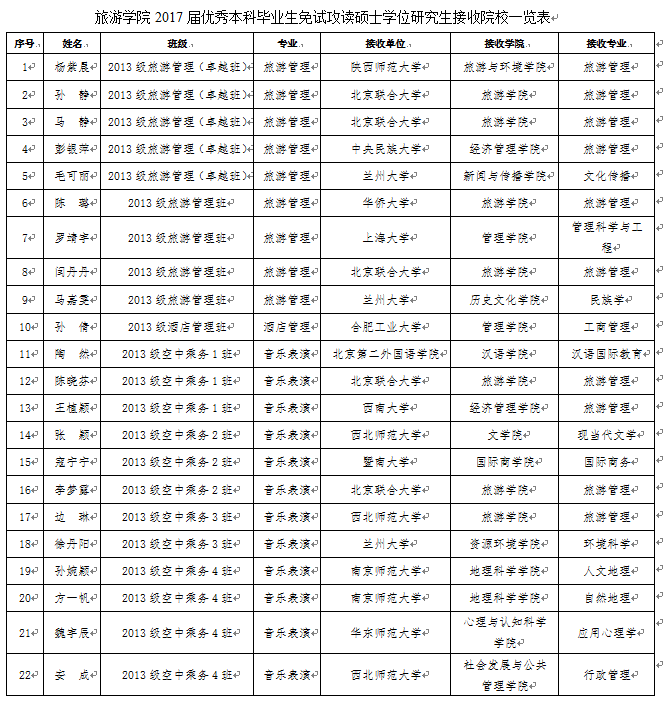 附:《伟德国际1946源于英国2017届优秀本科毕业生免试攻读硕士学位研究生接收院校一览表》