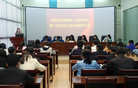 本次测评大会主要包括团委老师打分及员工干部互评两个环节。会议伊始,韩若苑老师对上半学期各项员工工作进行了总结,提出了各部门在工作中存在的问题和今后的改进方向。接下来组织部、体育部、学术部、纪监部等十二个部门的负责人分别做了述职报告,他们就半个学期来所做的工作进行总结,并对接下来要开展的活动做出汇报。