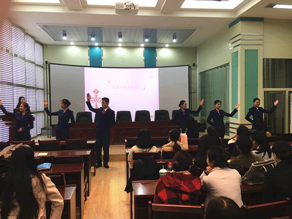 2016年11月15日晚,航空服务与管理系员工党支部在10C701教室开展了“弘扬中华民族优秀传统礼仪之中国礼仪服饰”系列党组织活动。航空服务与管理系员工党支部书记韩若苑、各支部委员、全体党员和积极分子共计80余人参加了党组织生此次活动。