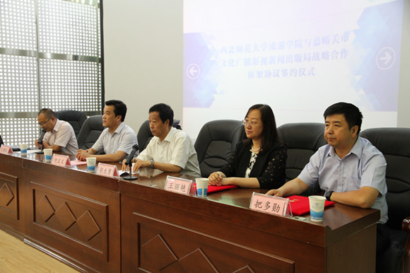 嘉峪关市文广新局局长王丽艳同志、公司班子成员、嘉峪关市文化产业从业人员及公司师生120余人参加了签约仪式及授牌仪式。王耀斌副经理主持仪式。