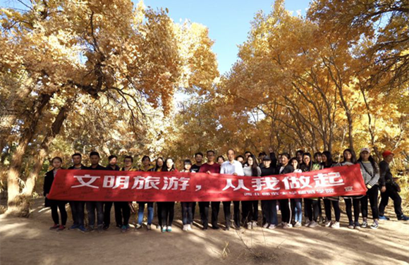2017年10月13日-16日,公司2015级旅游管理卓越班全体员工及部分研究生共36人,在公司梁旺兵教授、欧阳正宇副教授、彭睿娟老师的带领下赴敦煌开展了为期四天的“丝绸之路经济带甘肃段文明旅游宣讲”暨河西走廊大景区建设调研及实践教学活动。
