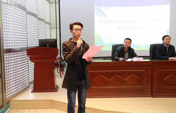 大会伊始,徐伟东同学作为员工干部代表宣读倡议书,在大学期间严格要求自己、规范自己的行为,遵守课堂纪律、尊敬师长、明确学习目标,爱护校园设施及环境、不使用违规电器,不在宿舍内饲养宠物。接着,由员工代表陈凯艺同学发言,倡议同学们以西师人的主人翁姿态关注评估、参与评估。