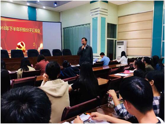 会议开始,党委副书记谢致远对上学年入党积极分子党课培训情况进行了回顾,并向大家传达了公司老师对入党积极分子的殷切期望。而后,全体入党积极分子依次发言,在大会上汇报自递交入党申请书以来,自己思想政治表现、学习成绩、参加集体活动、所获奖项等情况。他们表示,通过上党课、开展志愿服务活动以及观看优秀党员影片,他们的入党动机发生了改变,从考量自己的个人荣誉到现在希望全心全意为党贡献终生,他们的思想得到了升华。随后,进行了知识问答,内容主要包括“十九大”精神、新《党章》、社会主义核心价值观、新时代中国特色社会主义思想等。最后,党委书记李发舜对此次汇报会进行了总结,肯定了同学们的努力与付出,为同学们的精彩表现点赞。并指出入党首先要从思想上入党,并体现在学习、工作各方面发挥先锋模范作用。入党是一个不断追求的过程,希望大家可以矢志不渝地坚持下去。