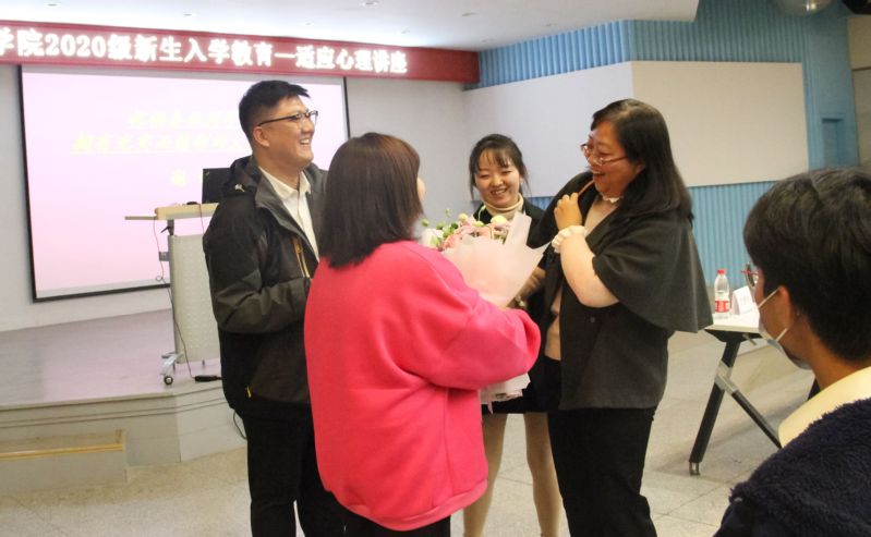 种媛老师首先从不同角度分别去分析新生入学可能存在的一些问题,并走下台和同学们积极互动,在了解同学们进入大学后的适应情况并给予相应的建议,告诉同学们对于大学、专业以及周围的生活不要忙于下结论,要有坚定的信念,大一到大四身处在同一个校园,需要成长的时间。