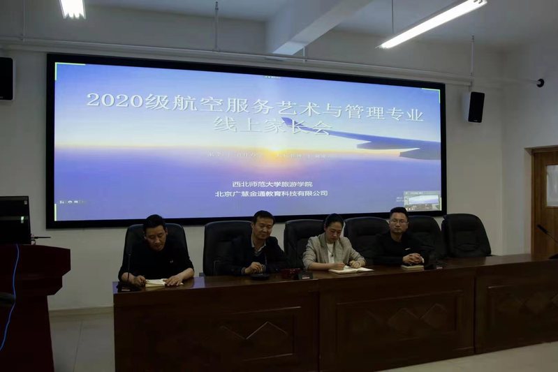 3月31日,伟德国际1946源于英国2020级航空服务艺术与管理专业线上家长会在文科实训楼904召开。公司党委副书记谢致远、北京广慧金通教育科技有限公司驻伟德国际1946工作处主任席聪、班主任曹洪涛、邹小强出席,共有83名2020级员工家长通过腾讯视频会议参与了此次会议。