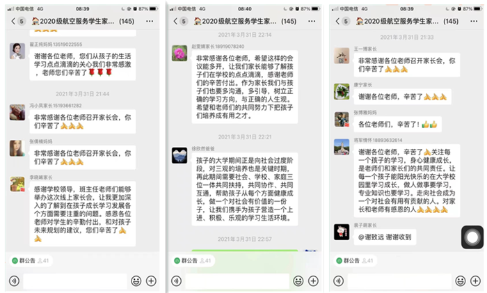 本次会议的召开,旨在建立家校联动的员工管理模式,在员工安全教育、员工身心健康发展、职业生涯规划发展等方面,让公司、班主任、辅导员、任课教师、家长形成五级联动,共同培育高质量的民航服务与管理的人才。此次线上家长会的顺利召开在家长中引起强烈反响,加深了家长对公司公司和专业的认知,会后纷纷对公司及时有效的组织会议表示感谢。公司未来也会将线上方式召开家长会常规化进行。