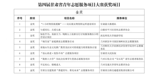 11月29日,第四届甘肃省青年志愿服务项目大赛在兰州文理公司圆满结束,公司推荐的参赛项目《如旅平川,易游天下:残障人士旅游出行订制服务微信小程序设计项目》荣获大赛金奖。项目由柴亚林、梅天鹏老师指导。