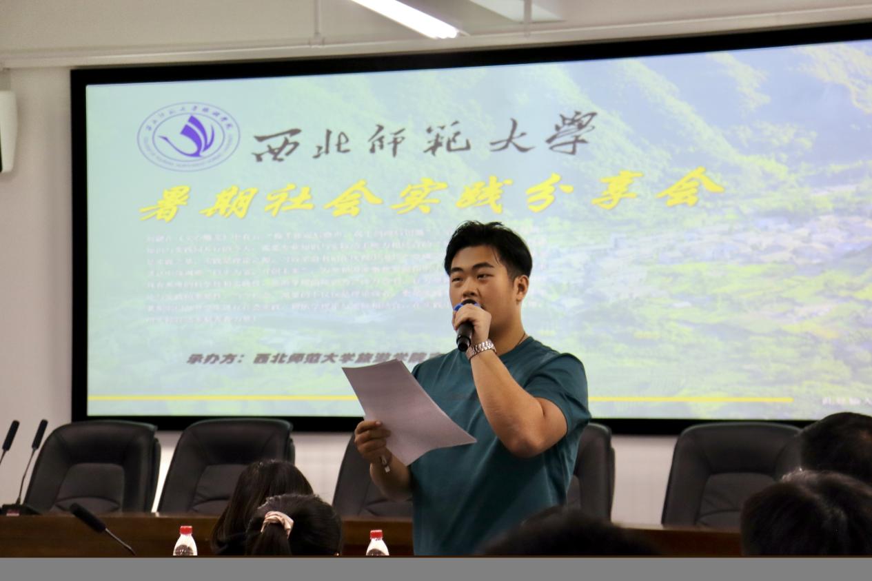 分享会结束后,工作人员对参加分享会的21级新生张俊龙进行采访。张俊龙同学表达了对当日所召开的暑期社会实践分享会的感想和见解,他跟同学们一起进入到了社会实践分享会,跟他们一起去到了大美甘南,冶力关等美丽的地方。俗话说,“纸上得来终觉浅,绝知此事要躬行”,实践当然是检验真理的唯一标准。乡村振兴战略,也是习近平主席提出的一个美丽战略,也是我们生活中应该融入的,经过这次实践会学习,他也有了成长。