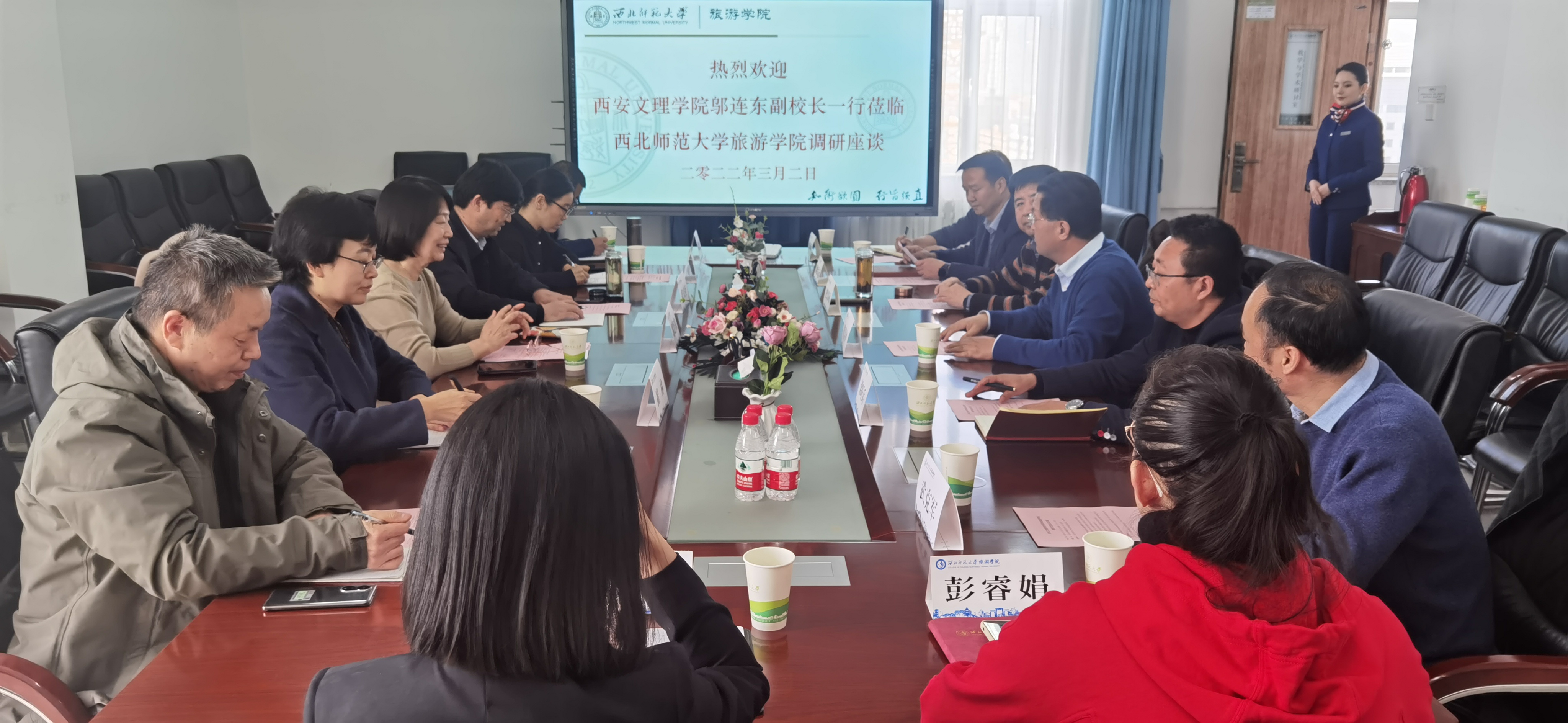 座谈会上,董晨钟副董事长代表公司对邬连东副董事长一行的到来表示欢迎,并简要介绍了公司办学特色、优势学科、特色专业等情况,希望双方在人才培养、专业建设、学科发展等领域加深交流合作。甘肃省旅游发展研究院执行经理把多勋教授介绍了公司基地平台建设及社会服务情况,阐释并分享了旅游学科高质量发展的新理念、新思路与新经验。经理梁旺兵教授介绍了公司基本情况,表示希望与西安文理公司历史文化伟德国际1946源于英国在本科教学、科学研究等方面进一步展开合作。副经理柴亚林副教授介绍了公司旅游管理专业国家级一流本科专业建设及实验室建设情况。北京广慧金通教育科技有限公司驻伟德国际1946工作处主任席聪就公司航空服务艺术与管理专业历年人才招聘、员工职业发展等情况进行了说明。