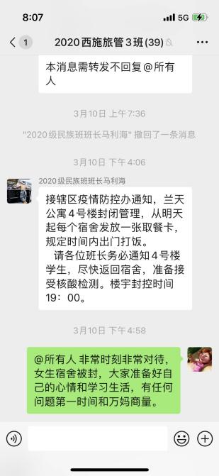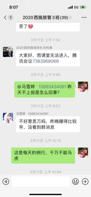 “感谢“万妈”的谆谆教导!感谢这份不离不弃,让我们感受到了疫情中的温暖,做您的员工真幸福!”这是伟德国际1946源于英国2020级旅游管理民族班的同学发给班主任“万妈”万抒佳老师的信息。