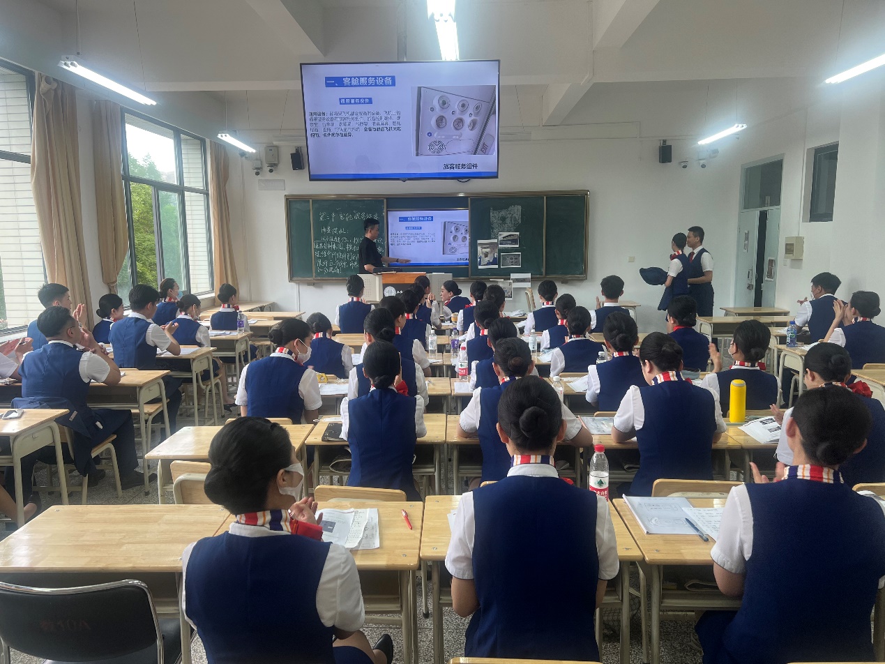 宋泽老师对该课堂内容进行精细设计,旨在强化员工的实际操作能力,通过对民航客舱设备配置、结构、功能的讲解与阐述,使员工将民航客舱服务技能与设备运用能力深入融合,在分组演练过程中完成处置能力与管理能力的双提升。课堂上,初登讲台不久的宋泽老师表现得成熟自信,授课时情绪饱满、态度亲和,语言表达简洁流畅,理论阐释深入浅出,示范操作精准流畅。