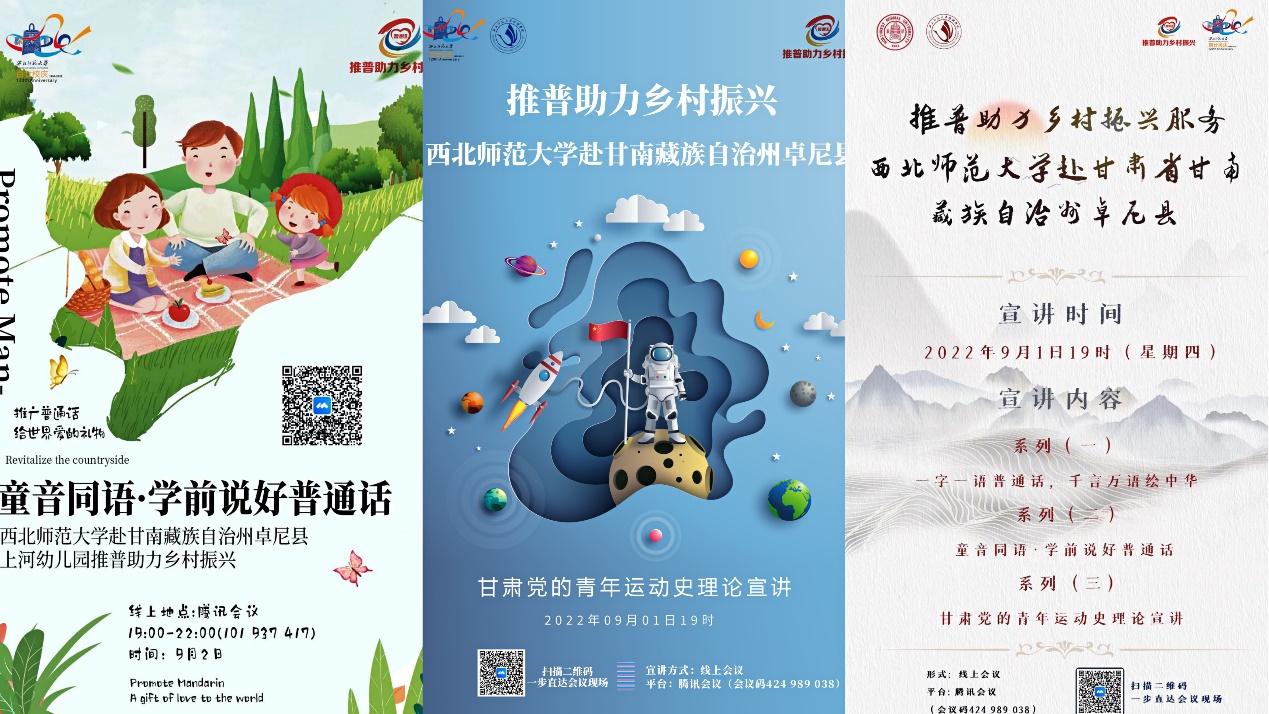 为深入贯彻落实习近平总书记关于语言文字工作的重要指示批示精神,落实教育部、国家乡村振兴局、国家语委关于印发《国家通用语言文字普及提升工程和推普助力乡村振兴计划实施方案》,伟德国际1946赴甘肃省甘南藏族自治州卓尼县推普助力乡村振兴服务队,经申请评选、组织推荐等环节,成功入选由教育部语言文字应用管理司、共青团中央青年发展部开展的2022年“推普助力乡村振兴”全国大中专员工暑期社会实践志愿服务活动。8月31日至9月5日,实践团队采取线上宣讲的方式面向甘南藏族自治州卓尼县开展了一系列暑期社会实践活动。
