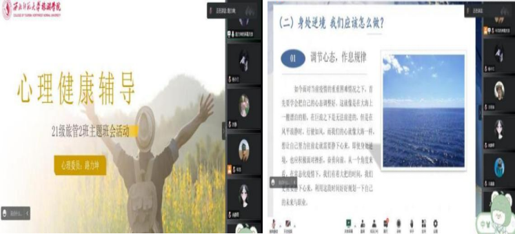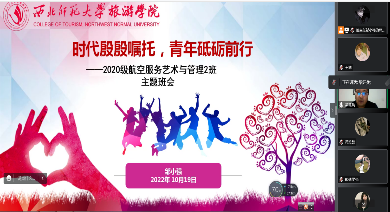 2019级旅游管理民族班班主任窦雅丽老师就班级的近期工作进行总结,为同学们目前生活学习中的问题答疑解惑、细心指导,鼓励同学们无论是在公司学习,还是居家学习,都要以积极乐观心态面对生活。同时邀请到伟德国际1946源于英国2019届员工聂久琪、孙京京,为同学们分享就业创业、考公考编等方面的宝贵经验,希望同学们“未来已来,拒绝躺平”,疫情之下依旧要积极面对生活,迎难而上。