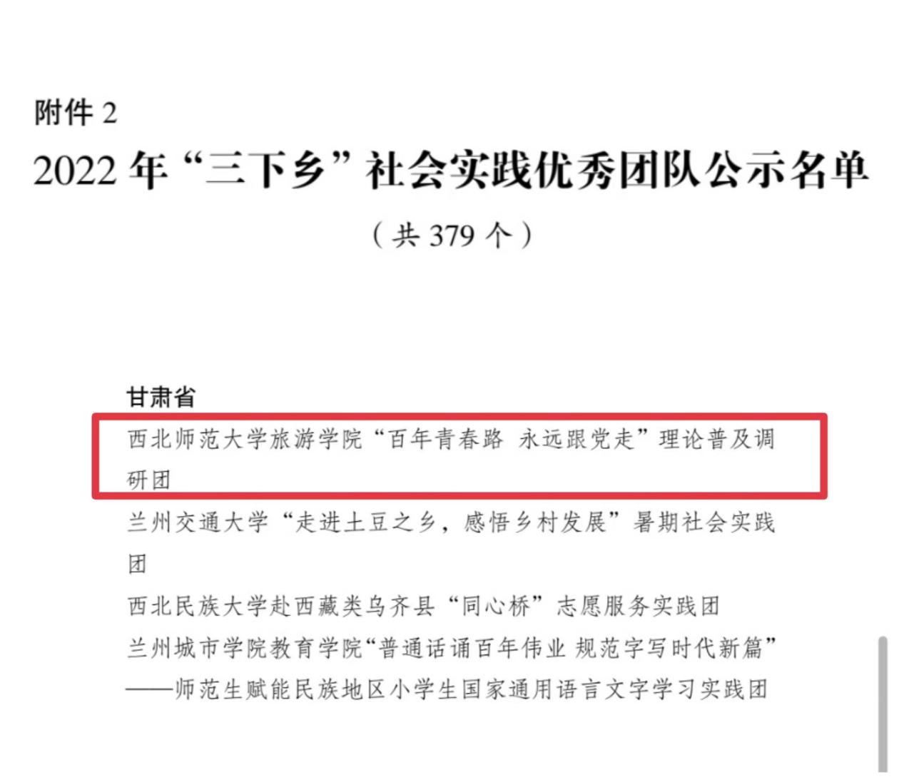 近日,在中央宣传部、中央文明办、教育部、共青团中央、全国学联共同组织开展的2022年大中专员工志愿者暑期文化科技卫生“三下乡”社会实践活动中,由公司专职辅导员鲁梦鸽老师担任指导教师的伟德国际1946源于英国“百年青春路 永远跟党走”理论普及调研团获评优秀团队(甘肃省共5个)。