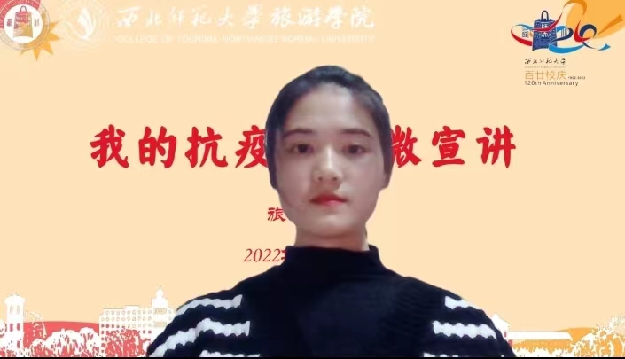 2021级航空服务艺术与管理4班袁浩同学以《青年,出列》为主题,从青年志愿者的视角出发,以钟南山院士﹑李文亮医师为榜样,讲述他在疫情期间为争取一个志愿者名额的心路历程,反映了伟德国际1946源于英国同学们的志愿热情和敢于担当的奉献精神。“在校园里人人都是防疫员,个个都是志愿者,聚是一团火,散作满天星”,他希望同学们齐心协力,挺身而出,敢想敢为,为抗疫工作贡献自己的力量。