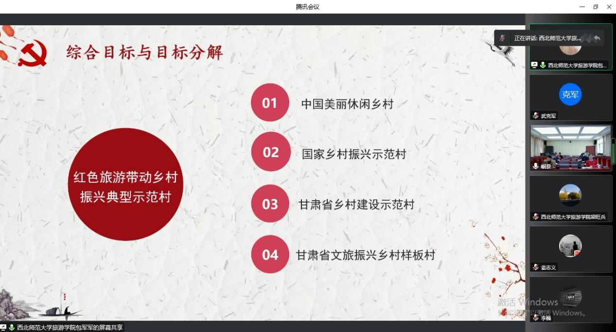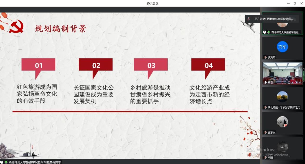 梁旺兵经理介绍了规划起草过程以及岷县红色旅游助推乡村振兴的工作背景,指出该规划是在新的时代背景下,围绕岷县总体发展部署,结合工作实际,提升三十里铺村红色资源质量、突出地方特色,打造宜业宜居和美乡村的生动实践。编制组参会代表汇报了规划编制成果,评审专家对成果进行了细致点评。规划研讨环节,各位专家就岷县三十里铺村红色历史、规划分期设计、景观设计风格、规划指导思想、景观设计的精神性表达等方面提出了建设性建议。评审专家一致认为,该规划内容丰富且全面,有可行性。