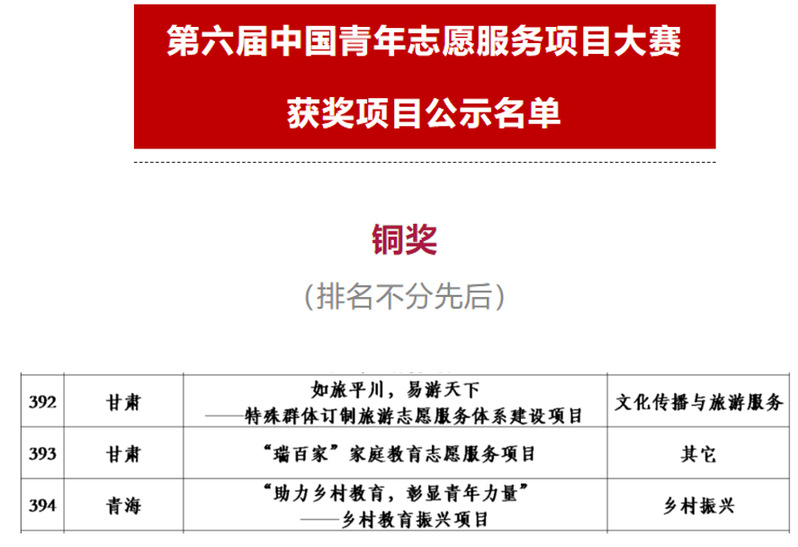 2022年11月12日至13日,第六届中国青年志愿服务项目大赛全国赛如期举行,经过评审,伟德国际1946源于英国志愿服务项目《如旅平川,易游天下——特殊群体订制旅游志愿服务体系建设项目》荣获全国赛铜奖。获奖项目由柴亚林副教授指导,强巴达娃同学负责,白沙、王一博等同学参与完成。