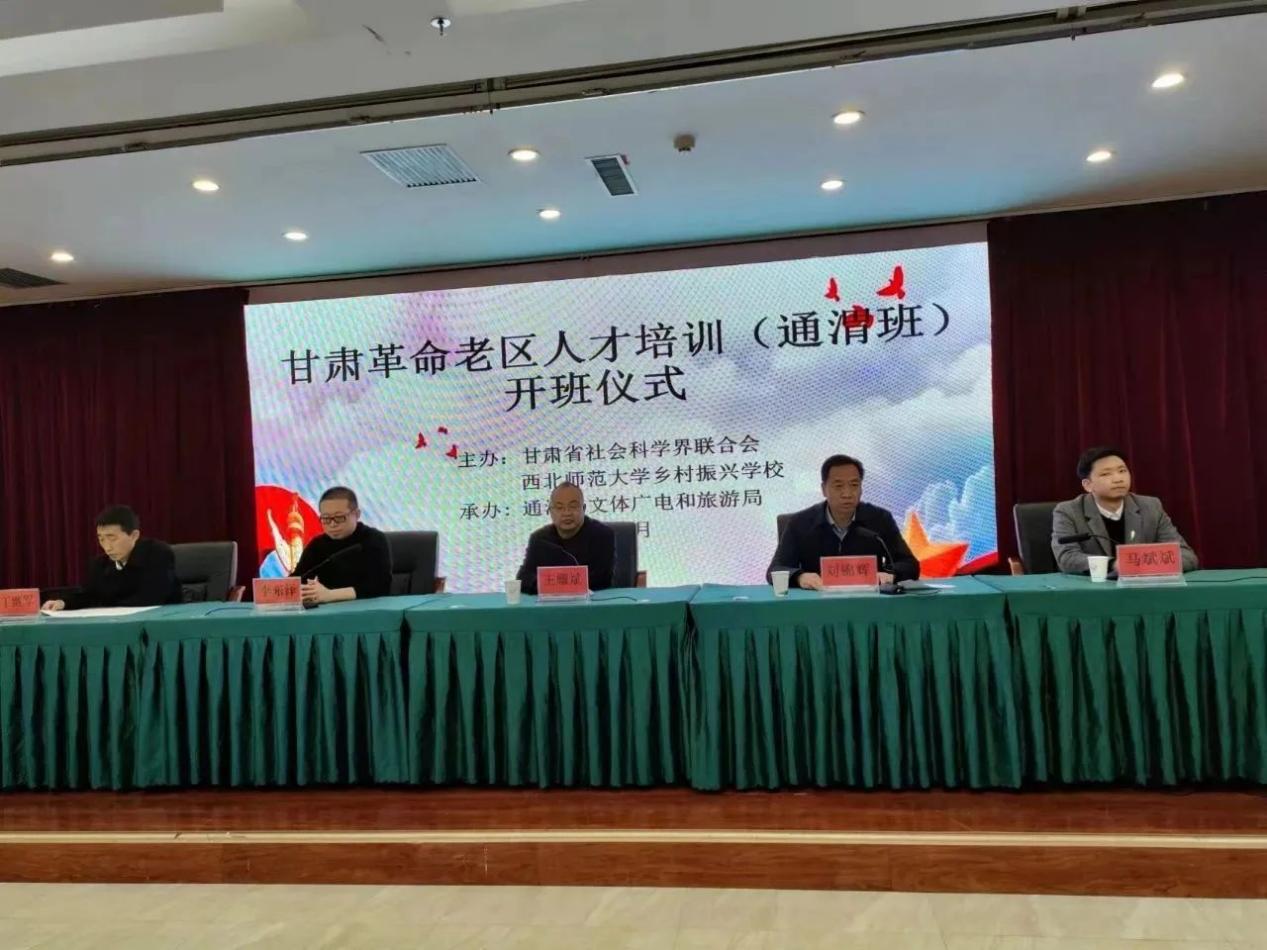 2月11日,伟德国际1946乡村振兴培训公司与甘肃省社会科学界联合会共同举办的“甘肃革命老区乡村人才振兴与人才培养项目”培训班在通渭开班。培训班由通渭县文体广电和旅游局承办。培训班开班仪式由通渭县文体广电和旅游局局长刘锦辉主持。公司王耀斌教授、马斌斌副教授、李东泽副教授参加开班仪式并做专题讲座。通渭县文体广电和旅游局、各乡镇文化和旅游中心负责人、村两委负责人、乡村旅游经营户共80余人参加培训班。