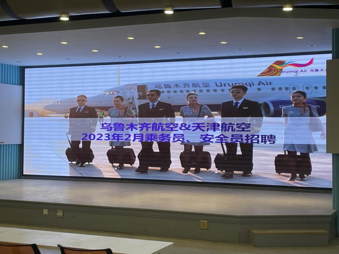 招聘开始前,乌鲁木齐航空举行了企业宣讲会,面试官为同学们介绍了公司的概况、航司概况、招聘要求及面试流程等内容,解答了同学们心中的疑惑,极大地增强了参加面试学子的信心。