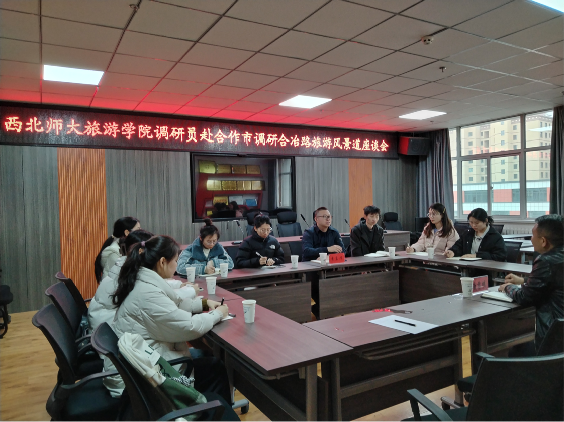 调研团队首先赴甘南藏族自治州合作市调研合冶公路旅游风景道建设项目。调研团队在合作市文体广电和旅游局召开专题座谈会。合作市文体广电和旅游局负责同志介绍了当前合冶公路旅游廊道建设情况、存在问题及规划需求,希望调研团队在现场踏勘的基础上针对内容植入、经营业态、创意景观等方面给予规划支持。
