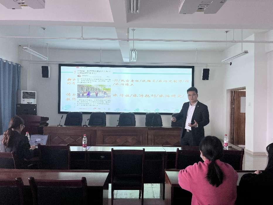 会上,通过现场提问的方式,单磊针对同学们提出的如何有效度过大学时光、旅游管理专业未来发展方向等问题,为同学们进行排疑解惑,帮助同学们树立目标意识和规划意识。开元森泊度假乐园管培生黄静梅、刘浩桐分享了自身工作经历、心路历程。