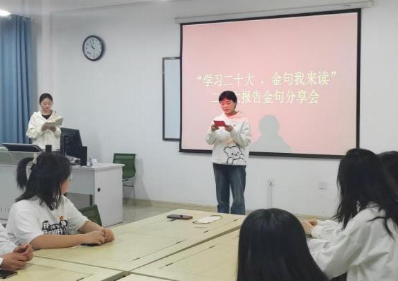 活动开始,主持人秦文梅带领大家共同学习了二十大召开的重大意义,和大家一起读原文、悟原理、知原意,用声音传播理论的光芒,用声音感悟思想的伟力,引导全体同学全面准确、深入理解党的二十大精神,切实把思想和行动统一到党的二十大精神上来,把智慧和力量凝聚到党的二十大部署上来。在场同学倍感振奋,深受鼓舞。
