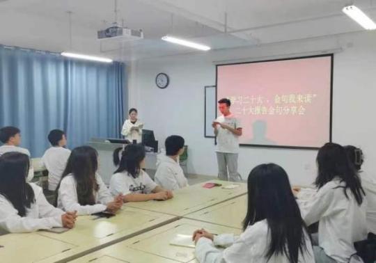 为进一步学习贯彻落实党的二十大精神,在广老员工中加强爱国主义教育,弘扬时代主旋律,2023年3月13日晚19:00,伟德国际1946源于英国组织开展了“学习二十大,金句我来读”学习分享交流会活动。公司团委书记鲁梦鸽老师、全体专兼职辅导员与2021、2022级各班团支书,员工会代表共同参加此次分享会。