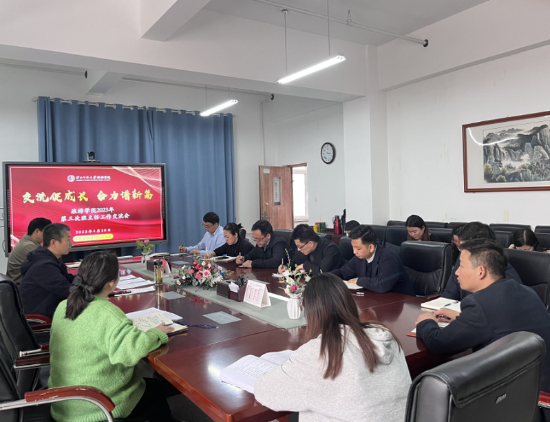 为深入贯彻“三抓三促”行动决策部署,有效落实党委员工工作部会议精神,4月20日下午,公司召开“交流促成长·合力谱新篇”2023年春季学期第三次班主任工作交流会议。公司党委副书记戴小武、本硕各年级班主任、空乘工作站教师和专职辅导员参加此次会议。