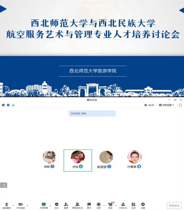 会中,西北民族大学航空服务艺术与管理系系主任付春燕老师对本公司的专业和人才培养方案进行介绍。她表示两校同设有航空服务艺术与管理专业,希望继续深化交流、携手共进、共谋发展,在团队建设、教学研究、人才培养、员工管理等方面加强沟通、深入学习,实现优势互补,共同书写西北地区航空服务专业发展新篇章,以交流和变革促进两校教育协同,为实现教育高质量发展打下坚实基础。