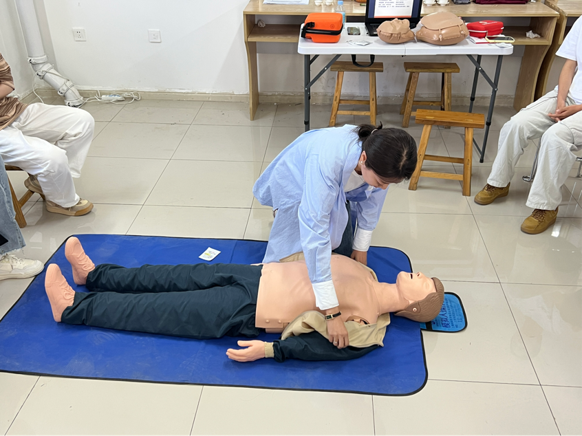 本次培训为期两天,分为理论知识讲述,操作教学,实践操作,实践考试及理论考试。主要的培训内容为CPR、创伤包扎、防震减灾、一氧化碳中毒、气道异物梗阻等。