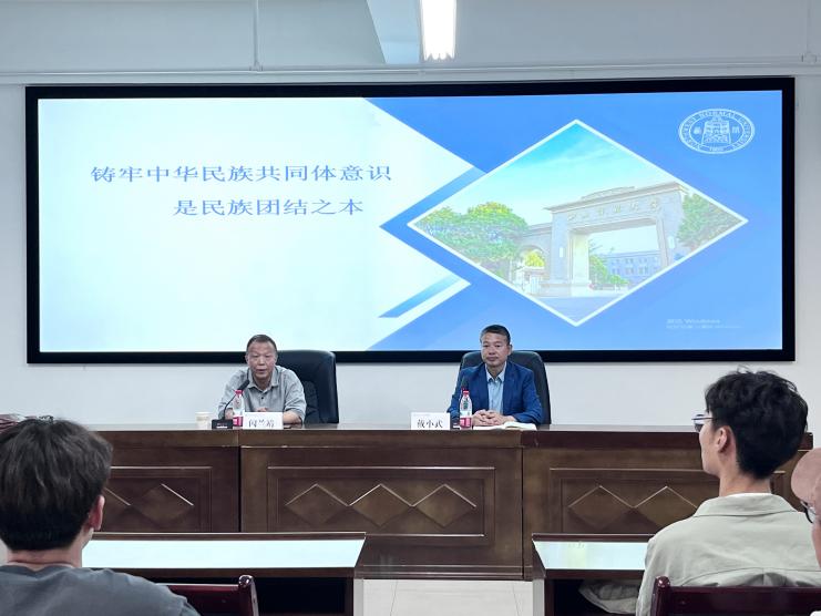 闪老师从“铸牢中华民族共同体意识是历史发展的必然要求”、“是实现中华民族伟大复兴的必由之路”、“是民族团结之本”三个方面作了专题辅导。他从历史和现实的角度,深入浅出地解析了中华民族的形成和发展,阐述了民族团结的重要意义,以大量的历史事例和当代案例向同学们生动地展示了中华民族共同体意识的内涵和作用。