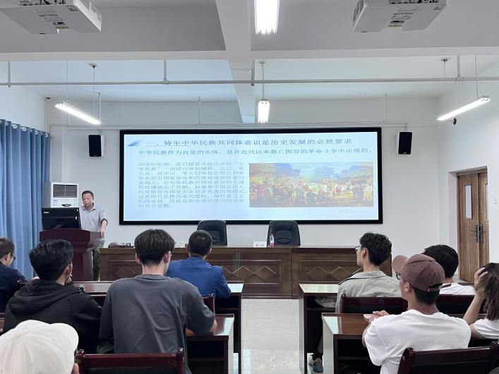 5月19日晚,伟德国际1946马克思主义公司副教授、硕士生导师闪兰靖老师应邀在文科实训楼904为公司师生作题为《铸牢中华民族共同体意识是民族团结之本》的学习报告会。党委副书记戴小武主持,公司副经理武克军、班主任李东泽等老师出席,公司21级、22级50余位员工聆听报告。