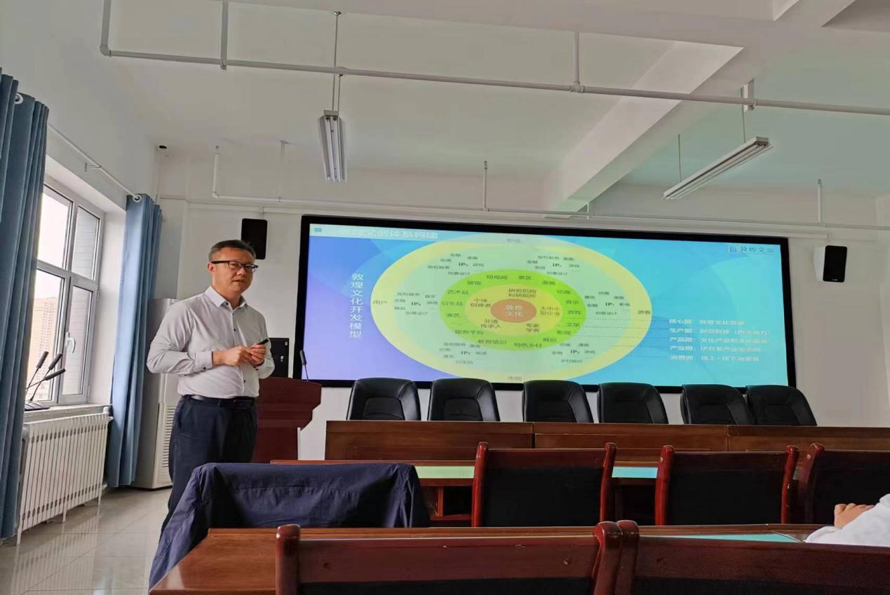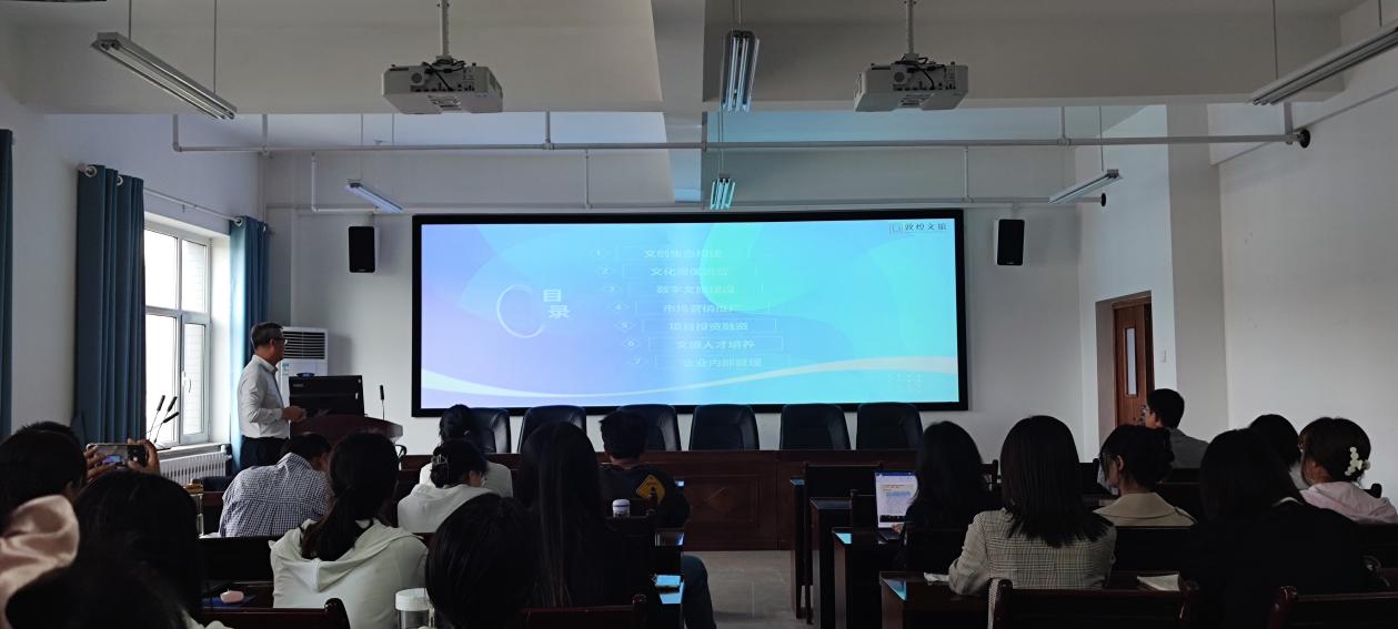 5月26日下午,酒泉文旅集团总经理、敦煌文旅集团董事长、甘肃文旅科教创新联盟副秘书长、甘肃省文旅企业家俱乐部理事会副理事长、甘肃省服务贸易协会副会长、甘肃省文化旅游系统劳动模范、甘肃省文化旅游发展突出贡献个人奖获得者孙晓强董事长在伟德国际1946文科实训楼(云衢楼)904教室,为公司师生作了题为“文化产业发展的实践与思考”的专题报告,报告会由王力副经理主持。
